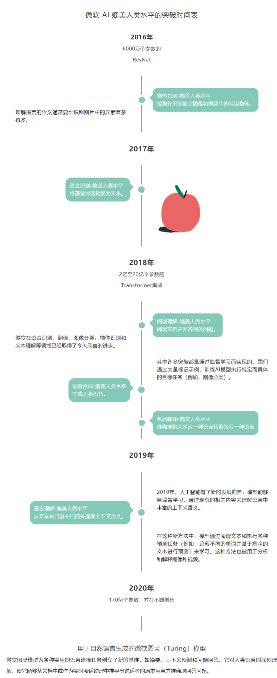 - 通过将“迁移学习”与在处理效率方面的创新相结合,微软将不断提高AI语言模型的智能,从而让所有人都能实现更远大的目标。