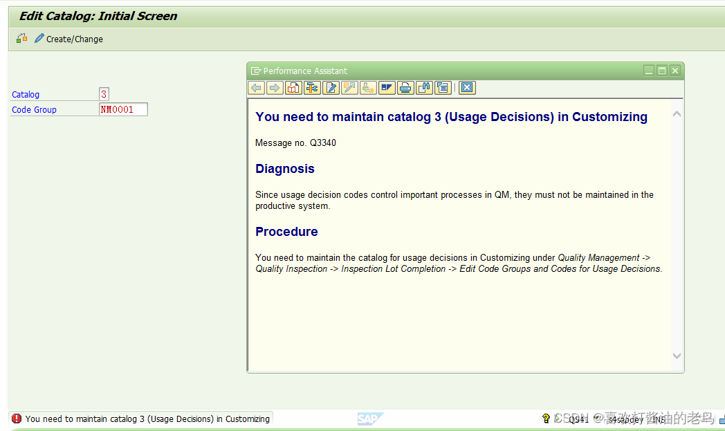 SAP QM QS41 试图维护Catalog为3的Code Group, 报错-You need to maintain catalog 3 (Usage Decisions) in Customizing-