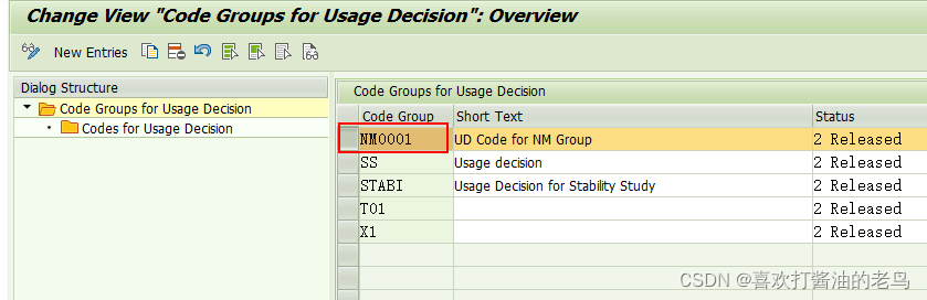 执行事务代码QS41,试图为工厂NMDC维护catalog为3(usage decision)的Code Group,