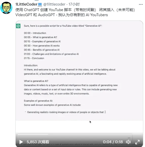 另外,还有网友使用 ChatGPT来生成视频脚本,这可以说是广大视频博主的福音了。