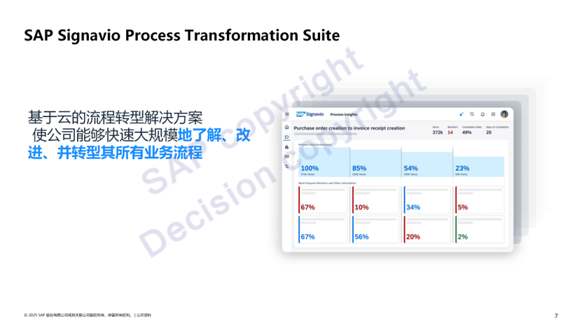 Signavio以数据驱动的真实流程为基础,帮助企业发现效率、风险与改进机会,并通过系统追踪变革成效,确保每一步转型都有据可依。