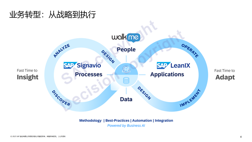 SAP通过BDC(SAP Business Data Cloud)帮助企业将数据快速整合起来,但是如何让企业更好、更快地了解自身用户,SAP通过以下三个层面来帮助企业进行卡点,实现从战略到执行的数字化转型管理: