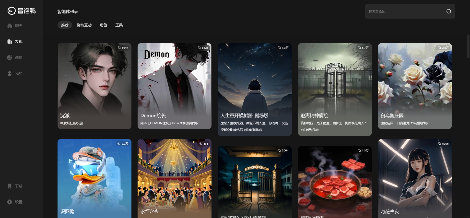 除了Step-1V和Step-2,阶跃星辰还推出了冒泡鸭AI开放世界。这是一个基于Step系列千亿参数模型研发而成的产品,它为用户提供了一个充满想象力的虚拟空间。在这里,用户可以探索各种故事,创造属于自己的角色,体验一个全新的AI世界。