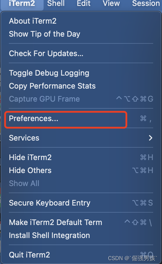 4. 打开 iTerm2 >>> Preferences