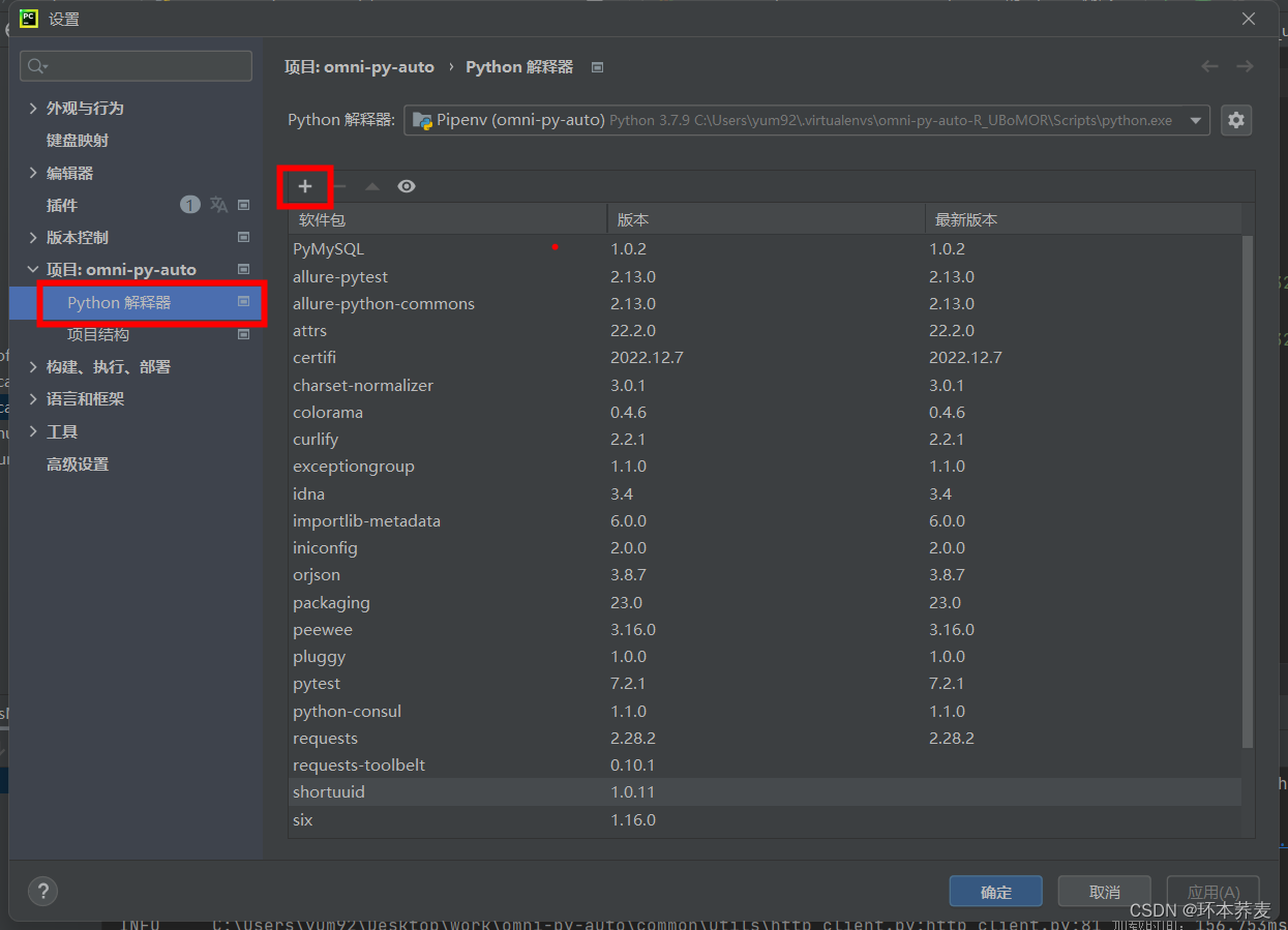 【Python】随手小记:报错处理:E ModuleNotFoundError: No module named ‘xxx‘ 注意:pip install 库可能会提示已经下载成功,但是运行case依然提示找不到库,这可能是你本身有个python3.7,但是我们的case在项目里,项目里的site-package没有这个库,所以只需要把python地址中site-package的requests_toolbelt库复制到项目所在的{py项目}\Lib\site-packages中即可。(项目本地地址可以从上图的python解释器一栏中看到。(2)在下列路径输入库名。