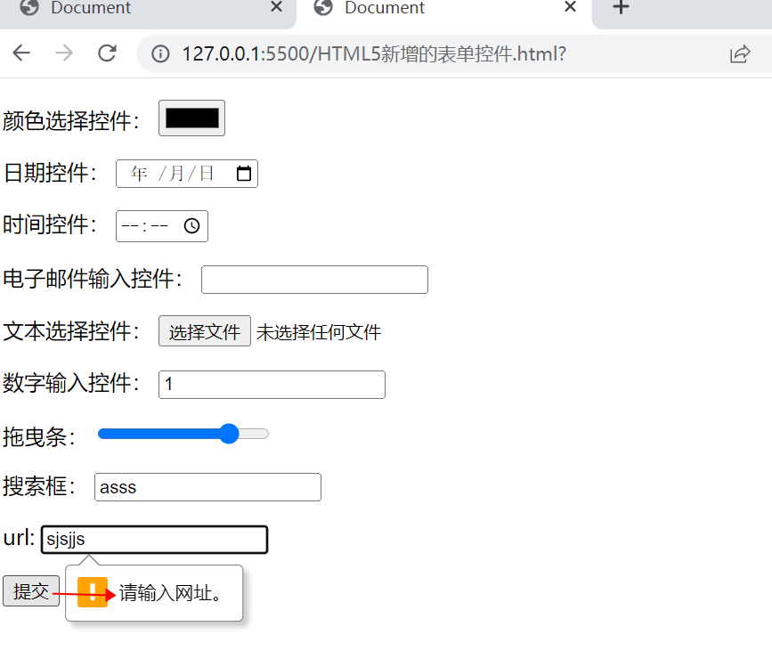url控件也一样,提交的时候会校验填写的内容的格式,所以需要输入正确的网址格式才可以校验通过(如http://www.baidu.com)。