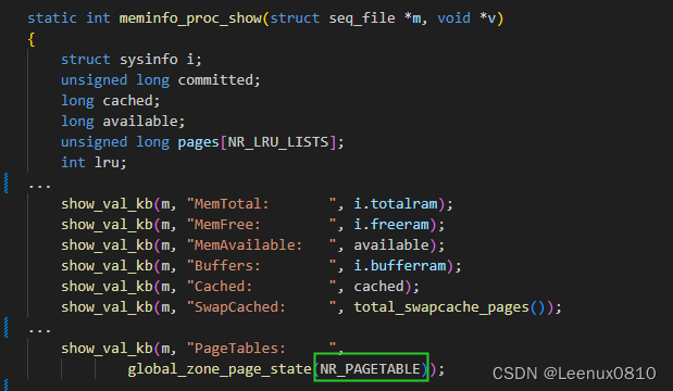 通过以上代码可知,PageTables主要统计的就是创建页表所消耗的内存。