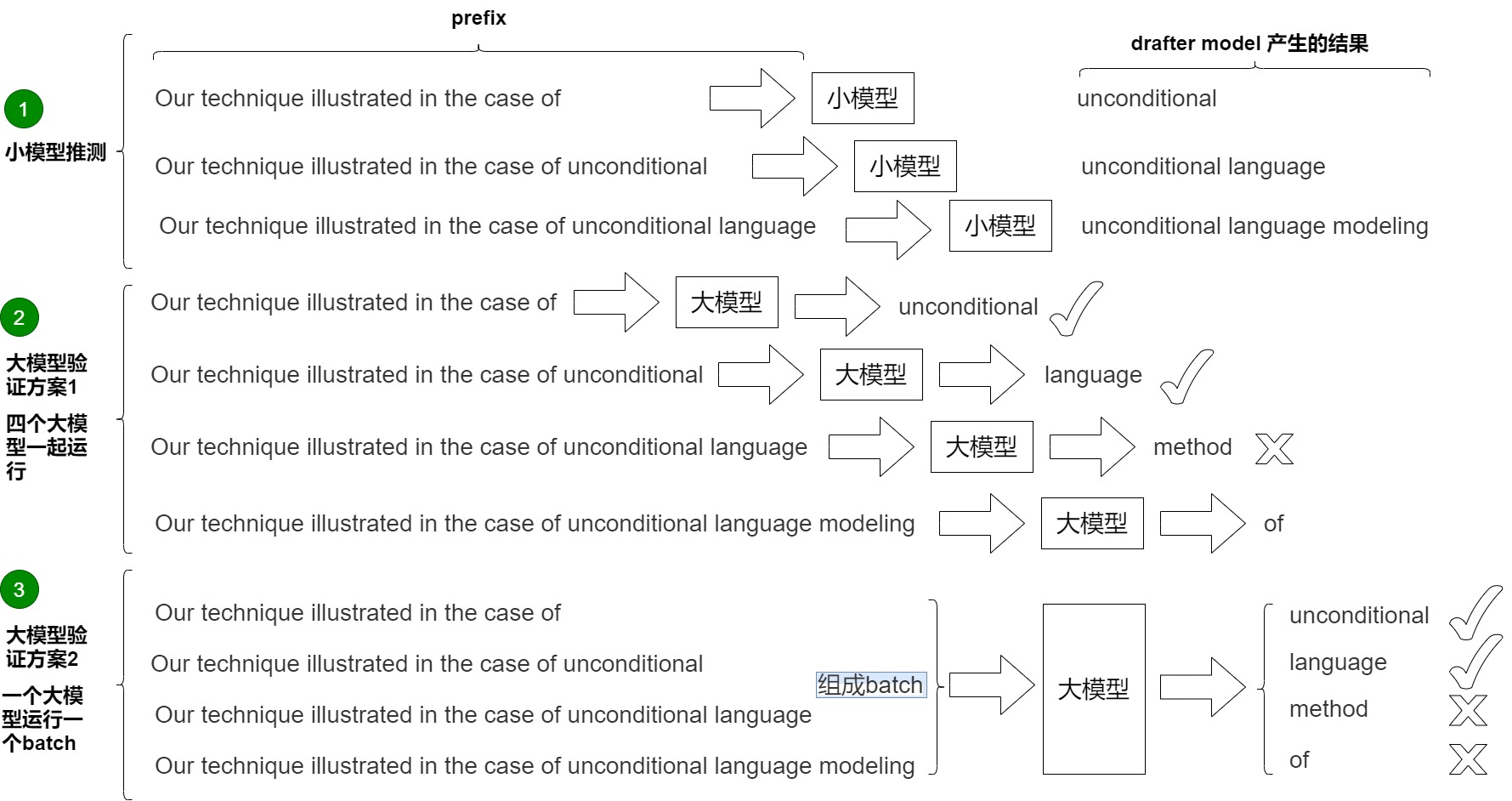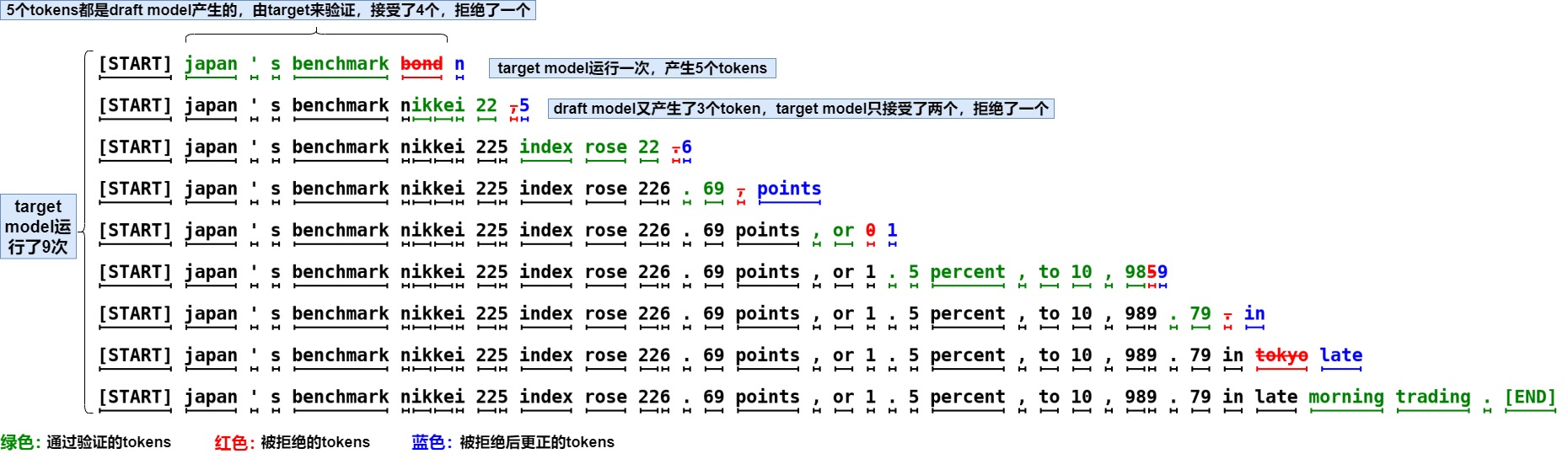 - 因为只接受第一个不一致的单词之前的单词,并且验证时候使用的就是原始模型 p1 ,这也就保证了最终结果是与原始序列预测的结果是完全一致的。