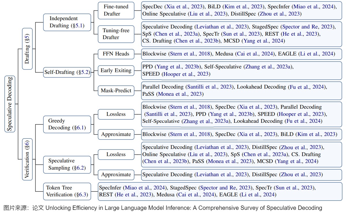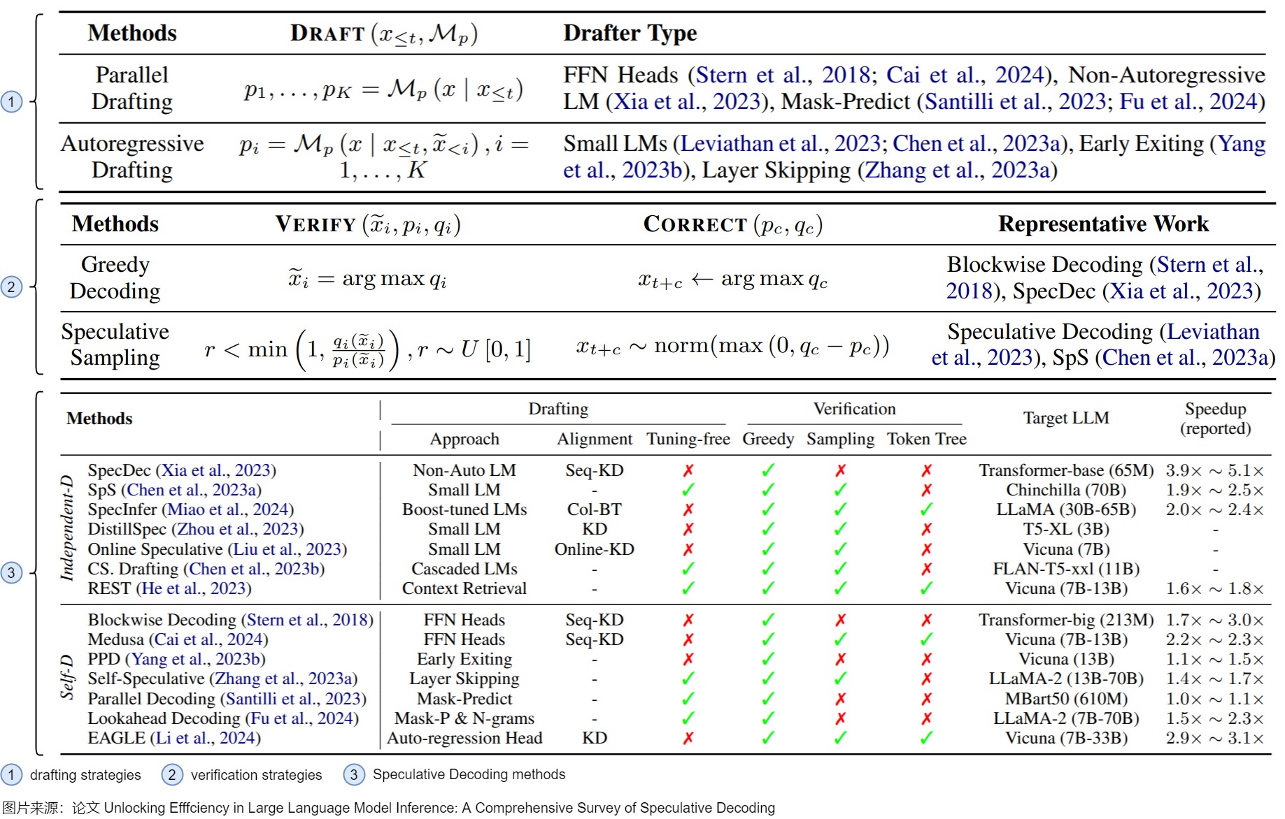 Xia, Heming, et al. "Unlocking efficiency in large language model inference: A comprehensive survey of speculative decoding."arXiv preprint arXiv:2401.07851(2024).