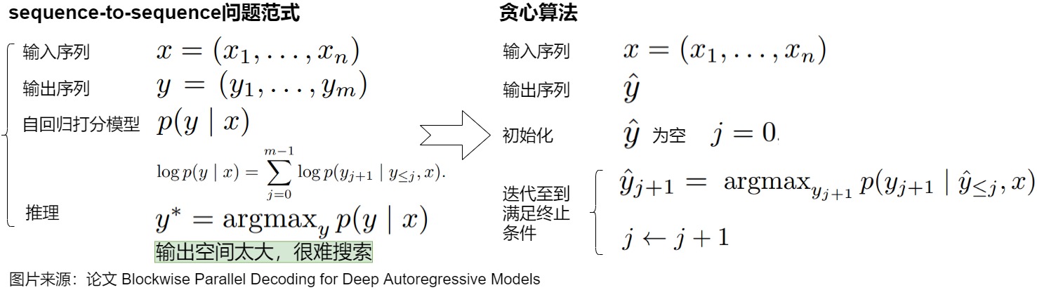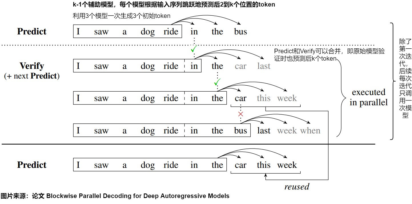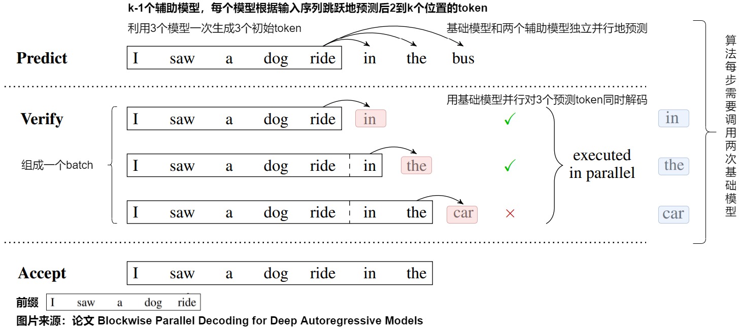 接下来,我们先对本领域的先驱之作"Blockwise Parallel Decoding"做简要分析,然后再结合两篇开山之作进行学习。