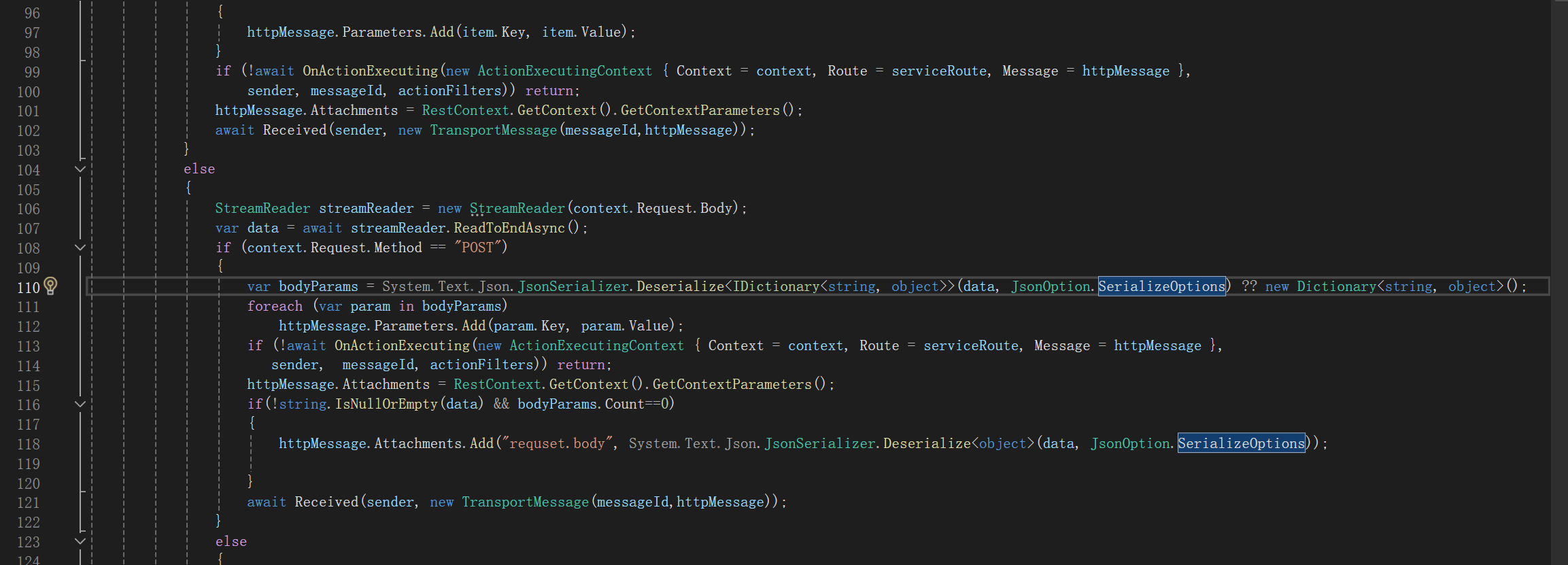 然后在httpkestrel的HttpMessageListener 类中,bodyParams也使用了sytem.text.json ,因为解码返回的是object, 所以必然要写转换,object 转换代码如下: