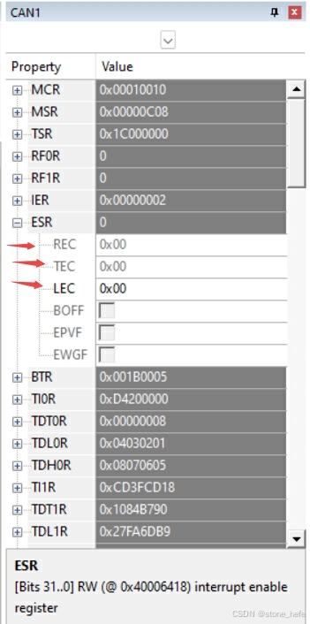 六、STM32提取CAN总线的ESR寄存器中的TEC值和LEC值方法