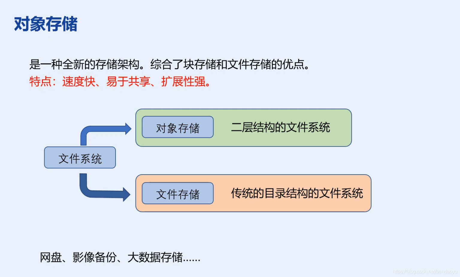 块存储:(ceph 虚拟成一个磁盘,文件系统在上层服务器上把ceph集群当成一个磁盘用)