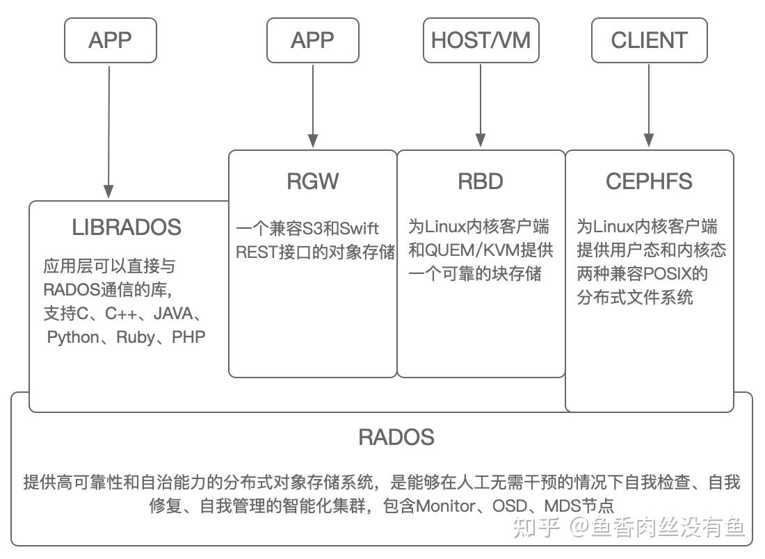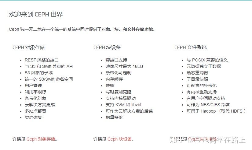 更详细:Ceph分布式存储详述 - 知乎https://zhuanlan.zhihu.com/p/164775822Ceph分布式存储详述 - 知乎