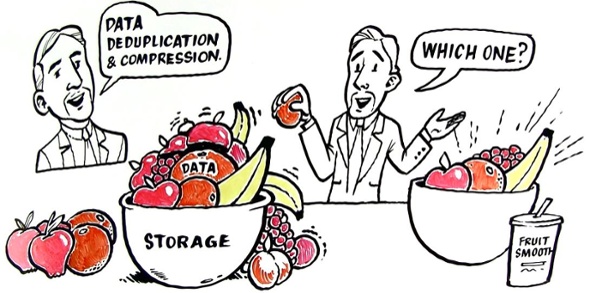 用通俗的话说:重删就是讲相同的东西只存储一次,而压缩则是改造数据排布用一种算法来统计数据的排布模式,从而达到减少数据存储的模式。