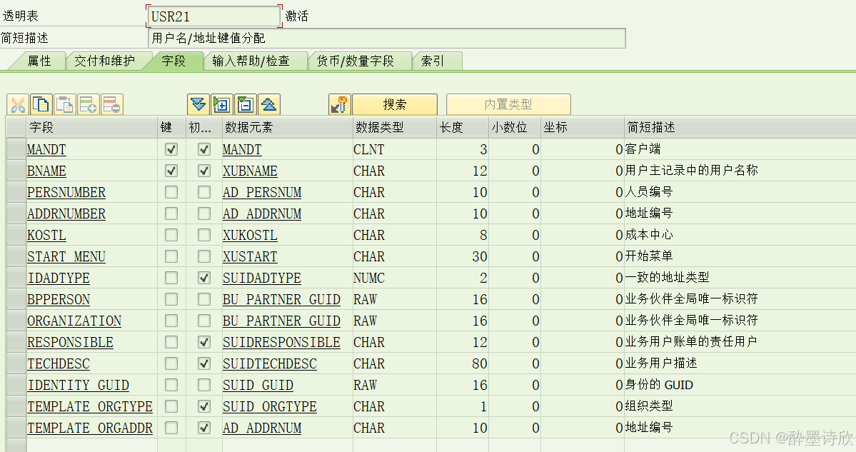 系统中存在这样两张表,一张表是USR21,表结构为: