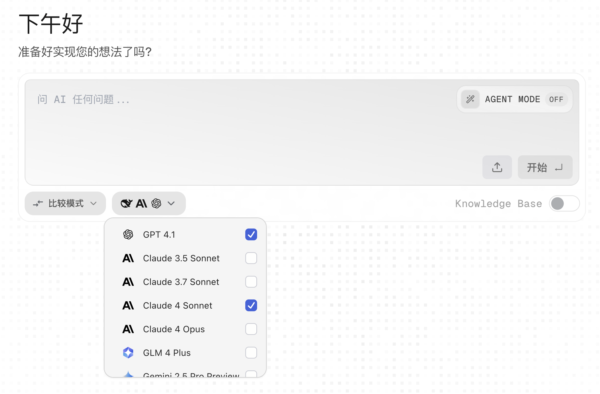 我比较喜欢的是【比较模式】这个功能,可以选择各种主流大模型,快速对比同一个提示词的作答效果: