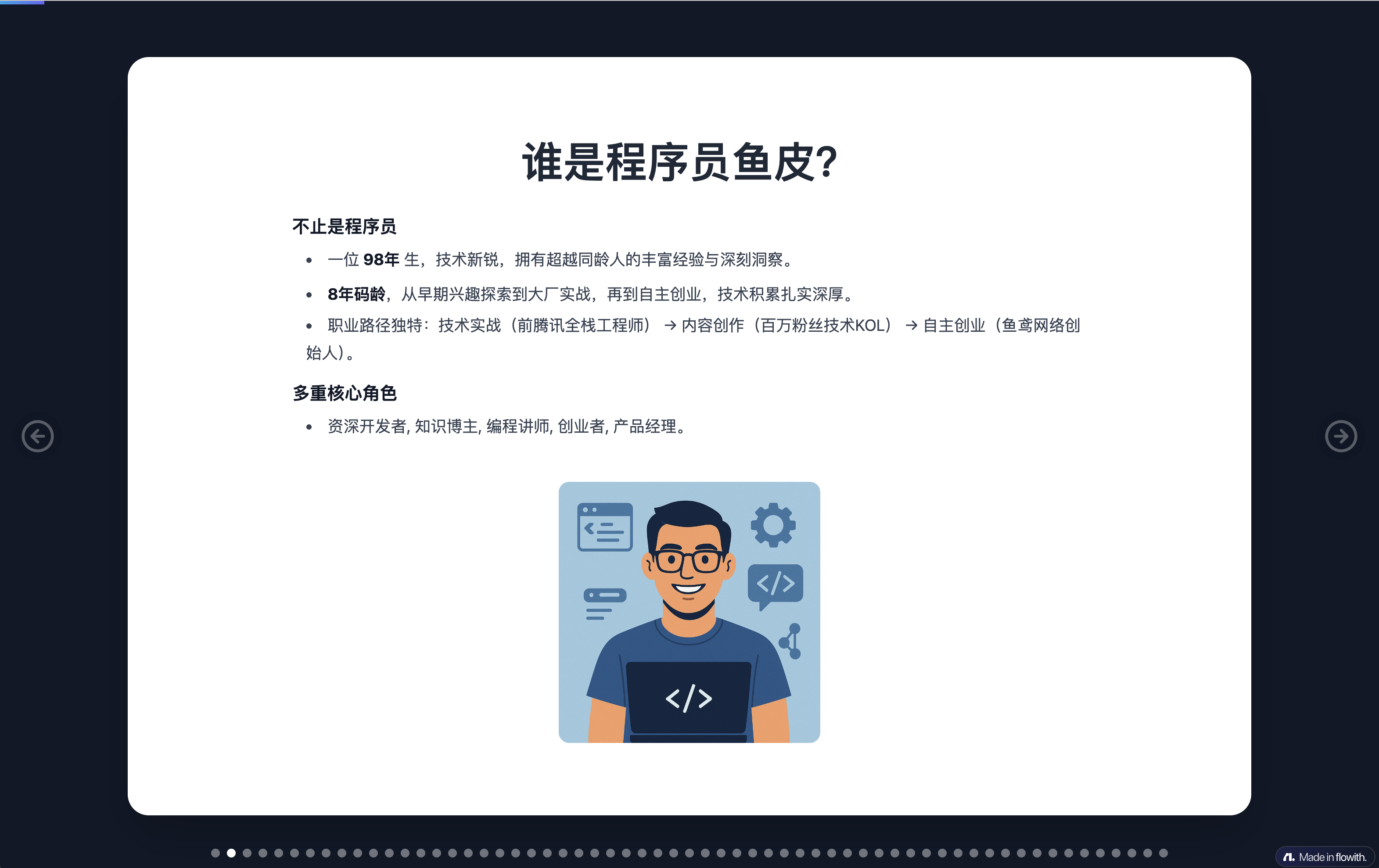 帮我生成一个 PPT,用于从全方面介绍程序员鱼皮,至少 50 页。
