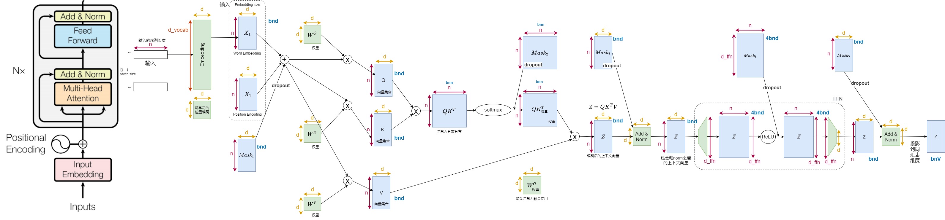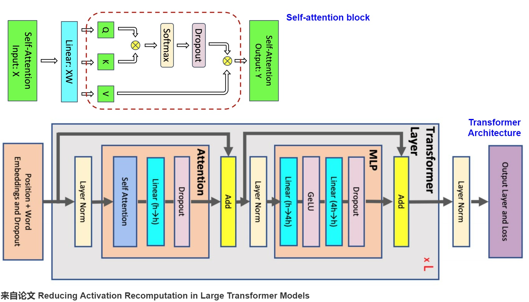 - 自注意力(Self-Attention,黄色标出)涉及矩阵-矩阵乘法。