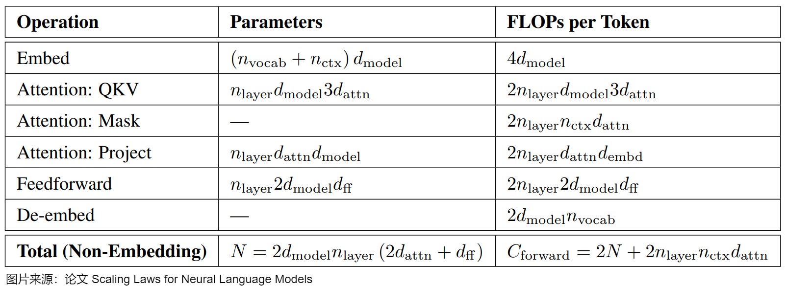 在论文"Scaling Laws for Neural Language Model"中也有类似的计算公式,具体如下图所示。