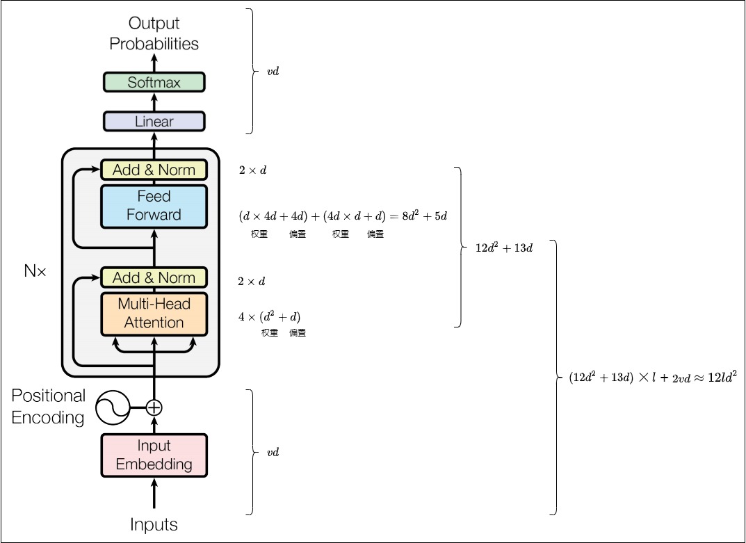综上,单个Transformer层的参数量是:[Math Processing Error] 12 d 2 + 13 d 。