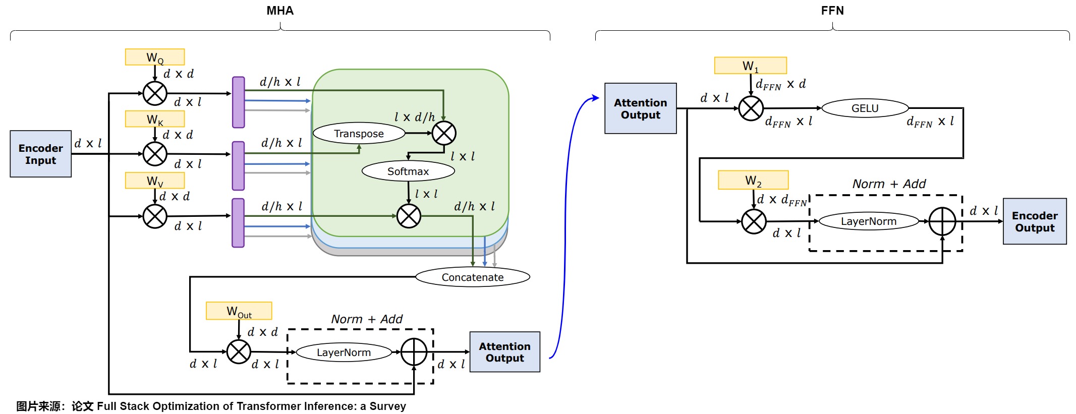 - 密集投影(Dense Projection,绿色标出)涉及向量-矩阵乘法。