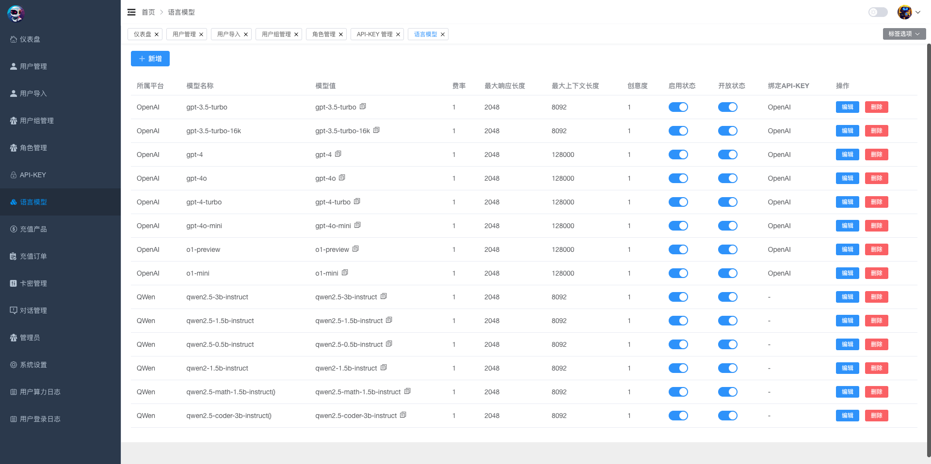 国内的模型,只要支持openai 的 SDK就可以在这个平台添加使用。