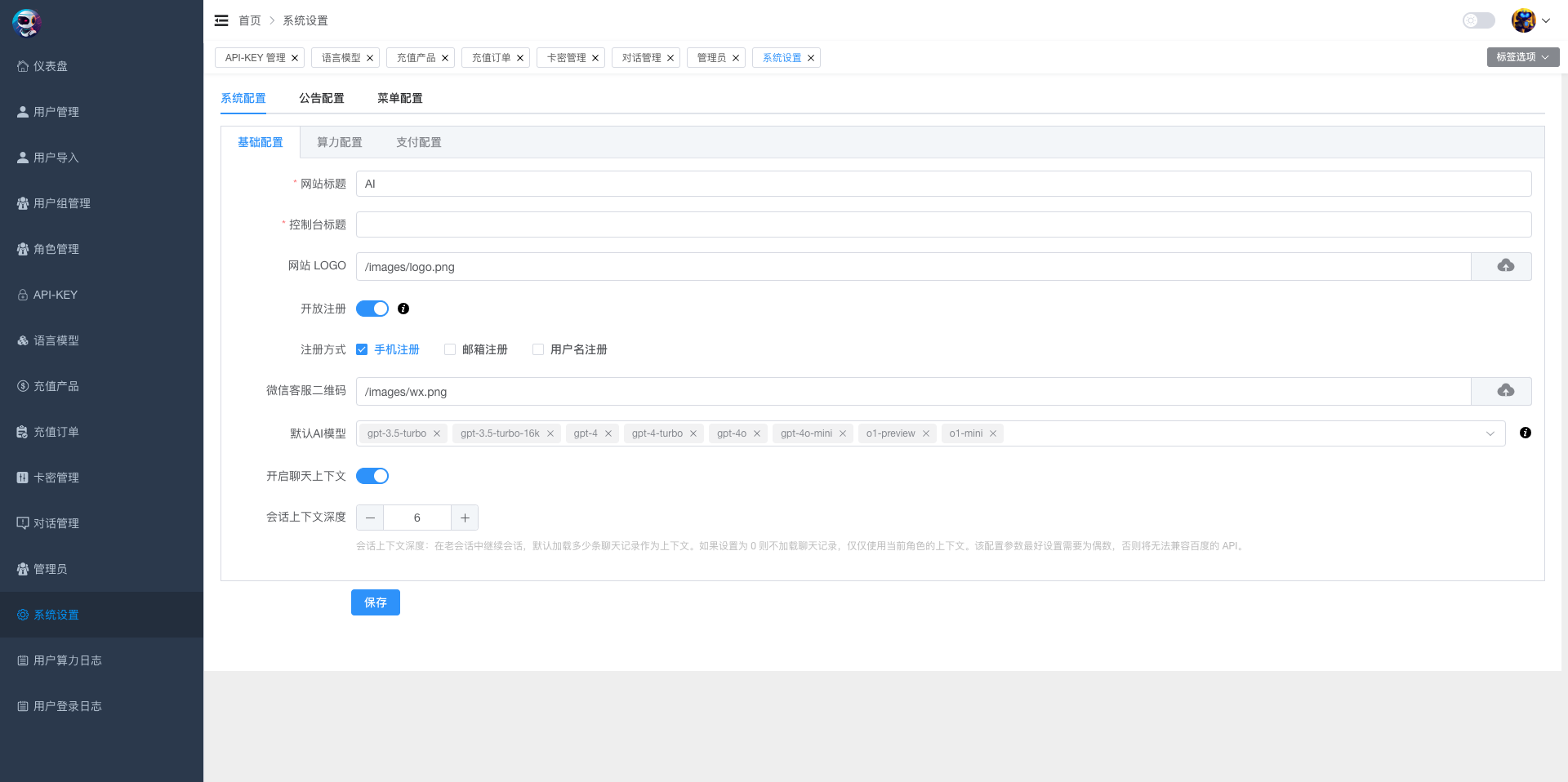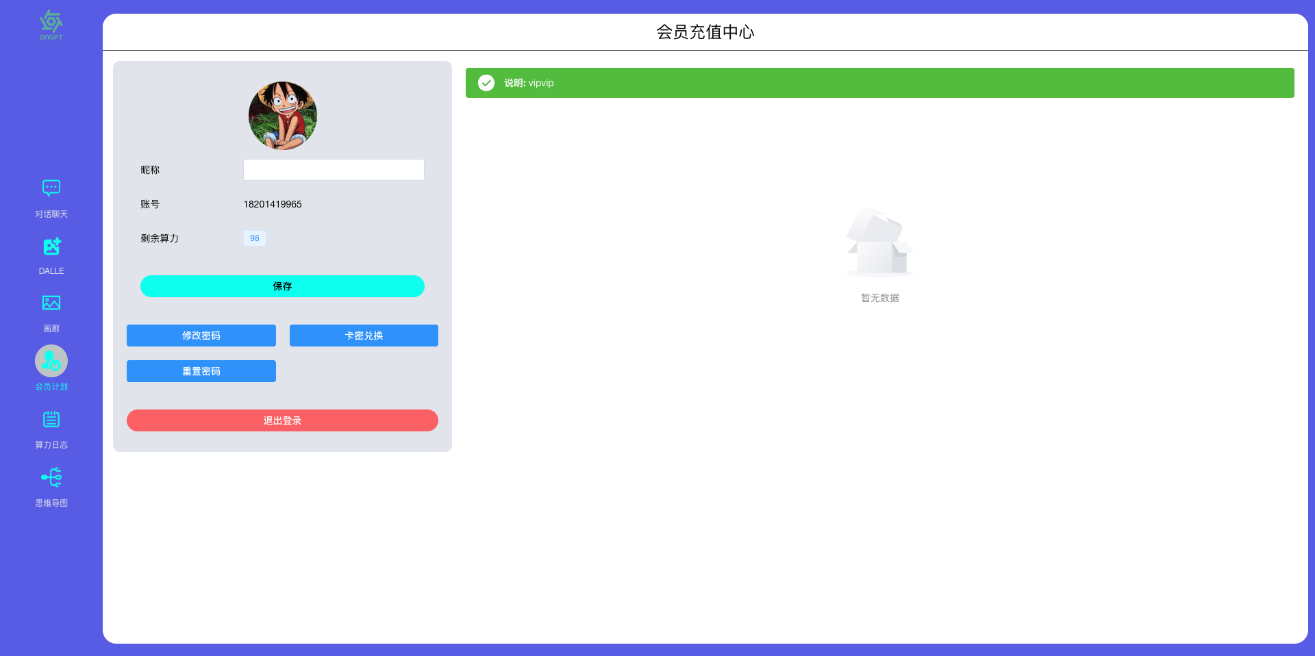 - 基于极客学长大佬的开源项目geekai 二次开发而来。首先感谢大佬的开源,致敬。大佬的项目地址:https://gitee.com/blackfox/geekai