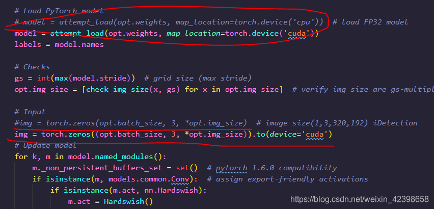 问题就出现这个转换的代码里,作者说,这个转换默认是调用cpu 的,所以如何使用GPU需要重新修改一下: