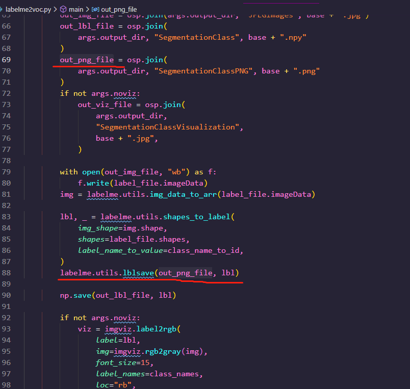 从图中可以看到保存我们标签的代码是labelme.utils.lblsave(out_png_file, lbl), 那我们进入看看 :