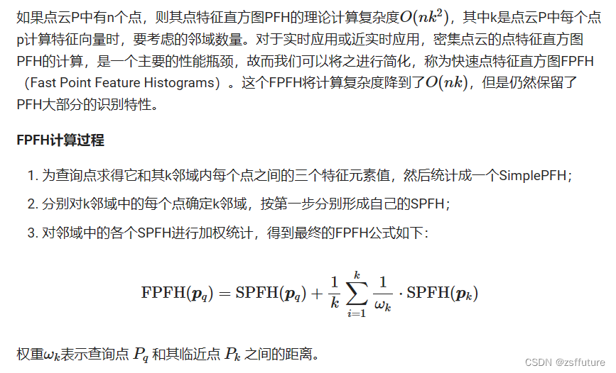 - 由于FPFH大大地降低了PFH的整体复杂性,因此FPFH经常使用在实时应用中;