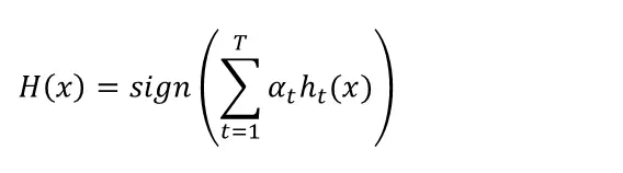 前一个分类器分错的样本会被用来训练下一个分类器。h_t是分量分类器C_t给出的对任一样本点 xi 的标记(+1或-1),h_t(xi) = yi时,样本被正确分类。 -