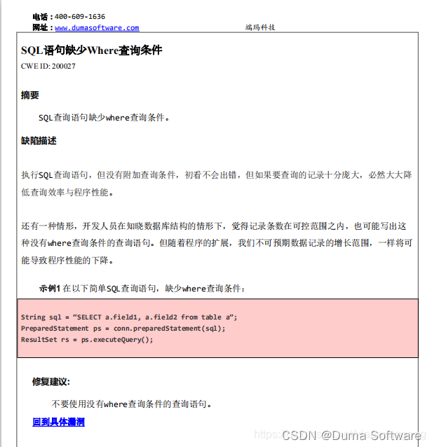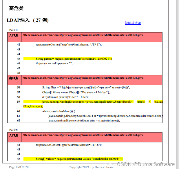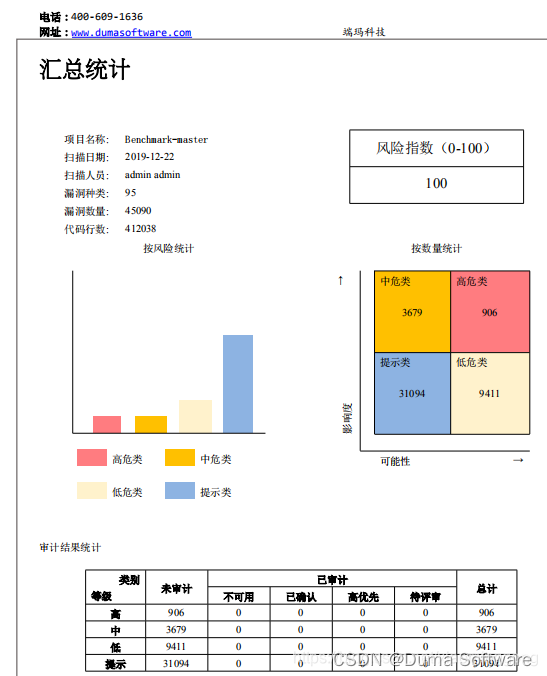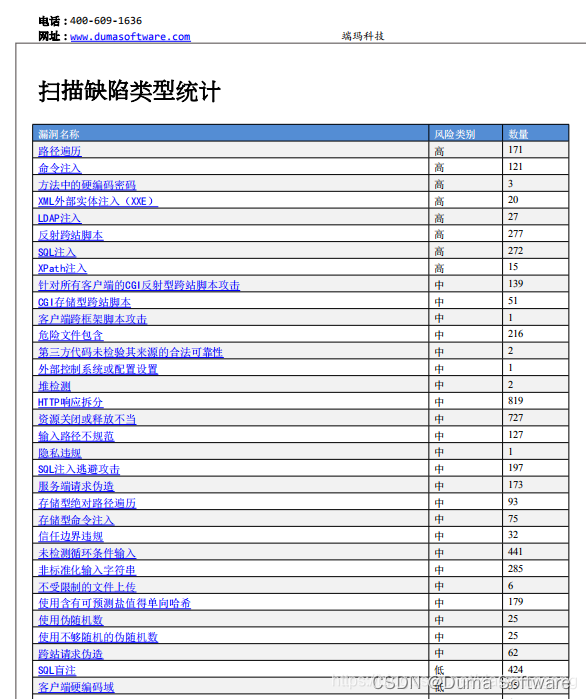 源代码扫描工具DMSCA扫描出的报告也是非常优秀,找到的漏洞全面准确,误报率低,值得一用,官网即可免费试用三次,大家看完报告的部分截图页后不妨试试。试用可以下载完整的报告哦!!