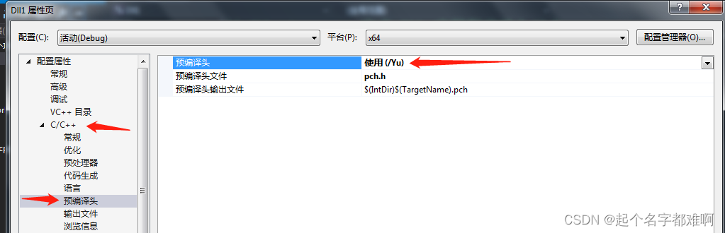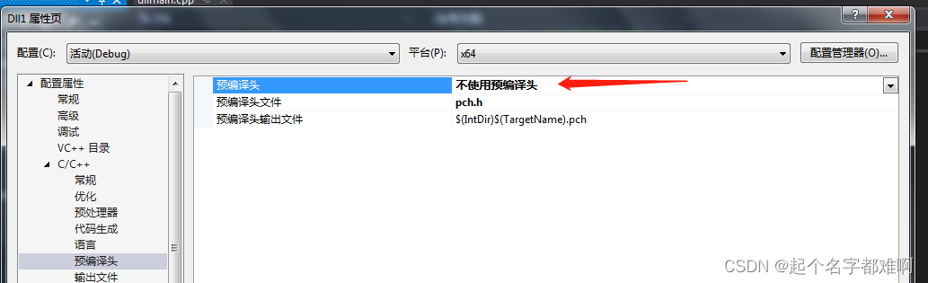 右击项目名称----> 属性 ---->配置属性 ------> C/C++ -------> 预编译头