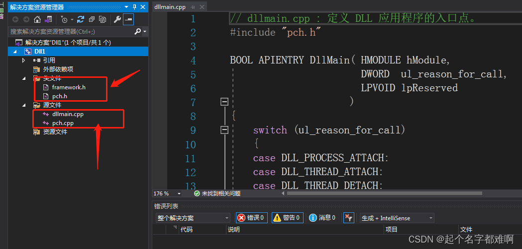 VS2019创建生成动态链接库后将自动生成多个文件: