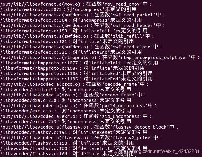 /home/xy/ffmpeg/ffmpeg-4.0.2/libavformat/swfdec.c:364:对‘uncompress’未定义的引用