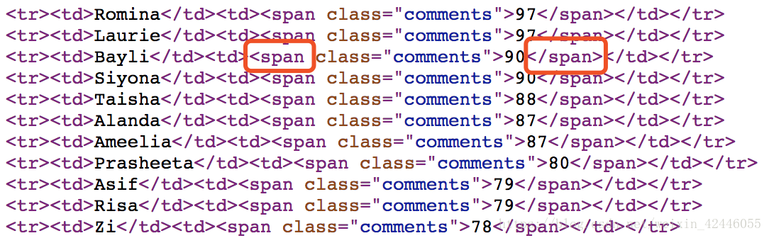 查看网页源代码发现数值前后的tag是"span",因此用span来定位,用for 循环查看这个tag,