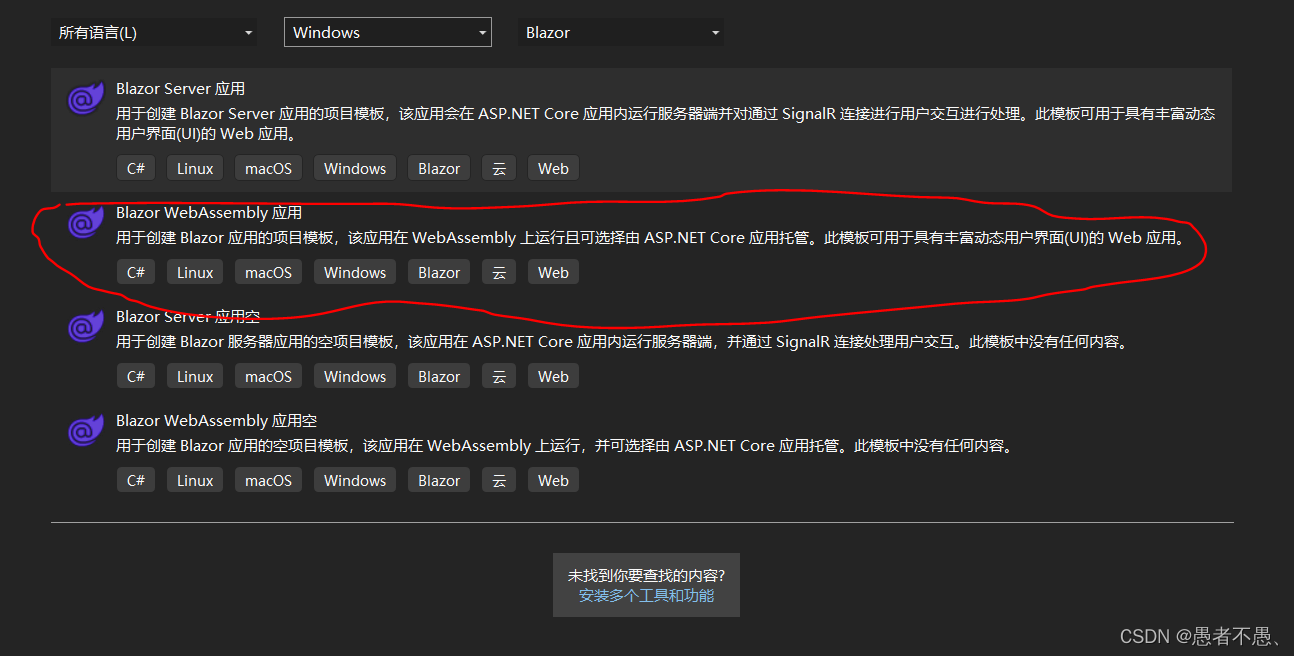 二、點選Blazor,選擇Blazor WebAssembly應用,點擊下一步