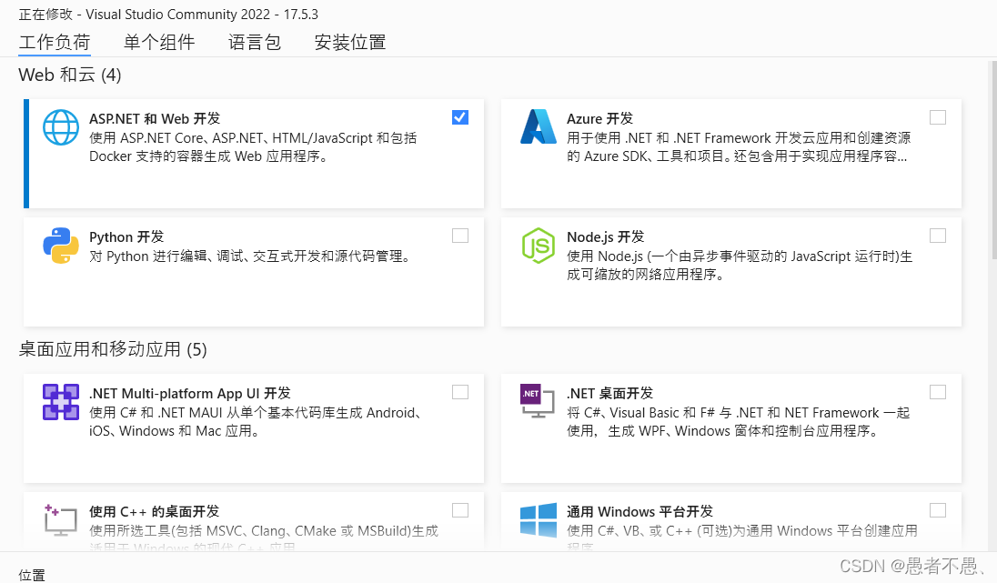 如果沒有選項,請在工作負荷中確認是否有安裝ASP. Net 和Web開發