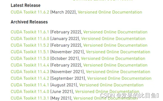 去Nvidi官网下载cuda安装包:https://developer.nvidia.com/cuda-toolkit-archive