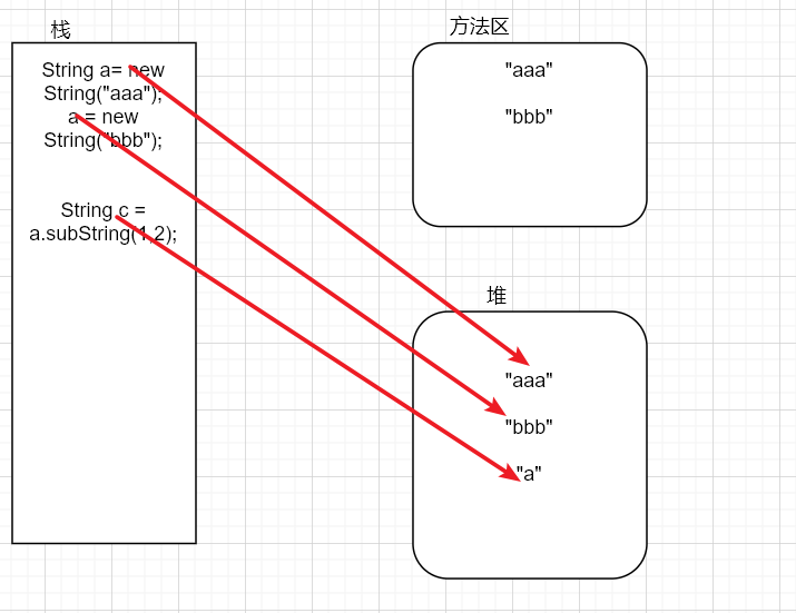 - 当执行此句时,因为"abc"对应的String实例已经存在于字符串常量池中,所以JVM会将此实例复制到会在堆(heap)中并返回引用地址