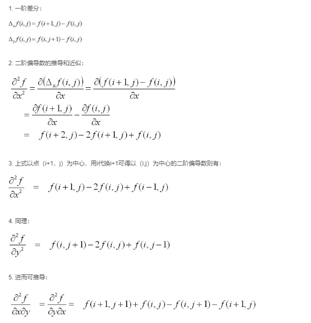 这里还有个细节,关于图像的二阶离散的梯度的计算,我们在百度上能搜到的结果是这样的: