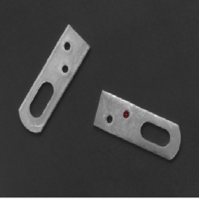 第五步:就是检测这个区域了,这里简单的提取个中心显示一下,正常你们是要对其进行某些检测的。比如我在小孔这里画个白色的什么脏东西,你就可以用Blob分析去检测出来,或者这里小孔位置歪了,或者干脆没有小孔,那么你该怎么检测呢?