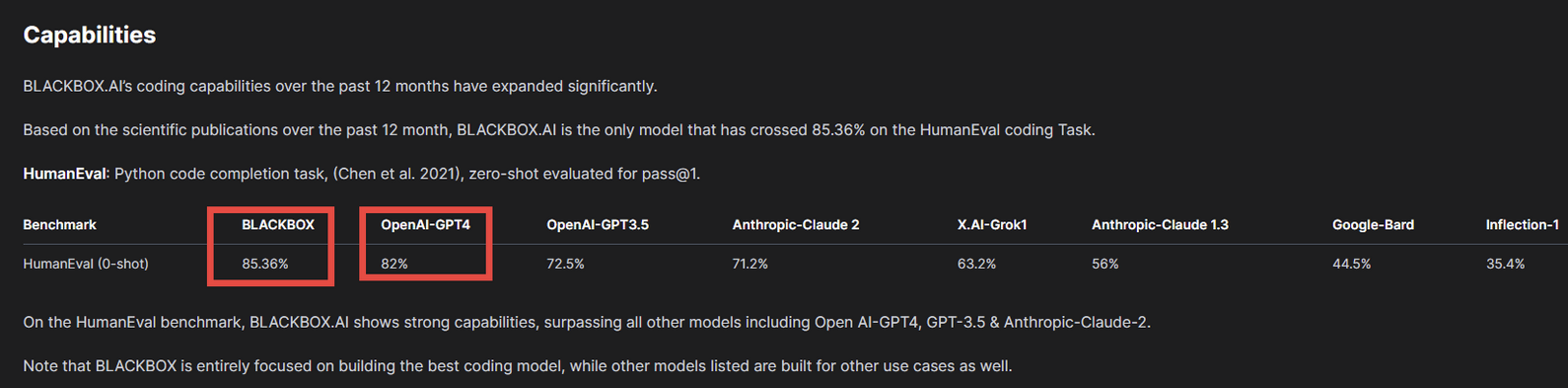 Blackbox AI:你的智能编程伙伴 Blackbox AI 产品介绍Blackbox是专门为程序员量身定制的语言大模型,它针对20多种编程语言进行了特别训练和深度优化,在AI代码编写和辅助开发的效率上远超其他大模型。在过去12个月超越了所有其他的语言模型,在HumanEval测试任务中达到了85.36%的完成度,位列第一。它深度集成了LLaMA模型,它...