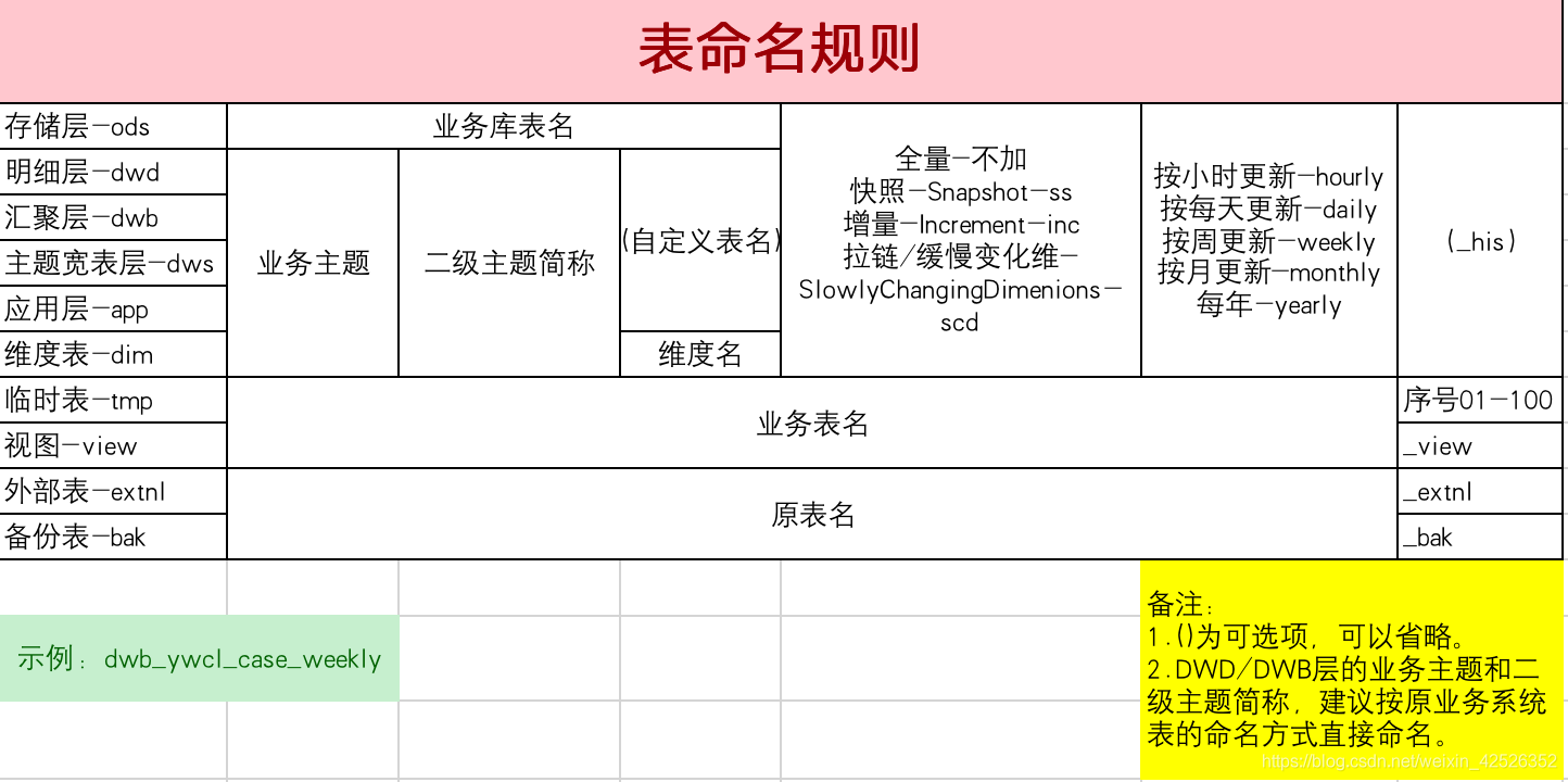 · 正常流向:ODS>DWD->DWB->DWS->APP,对于使用频度非常低的表允许DWD->DWS。