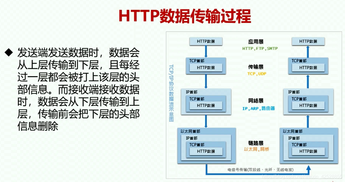 每层协议都在上层协议的基础上,加上本层协议的头部信息 ,链路层还会加上尾部信息。