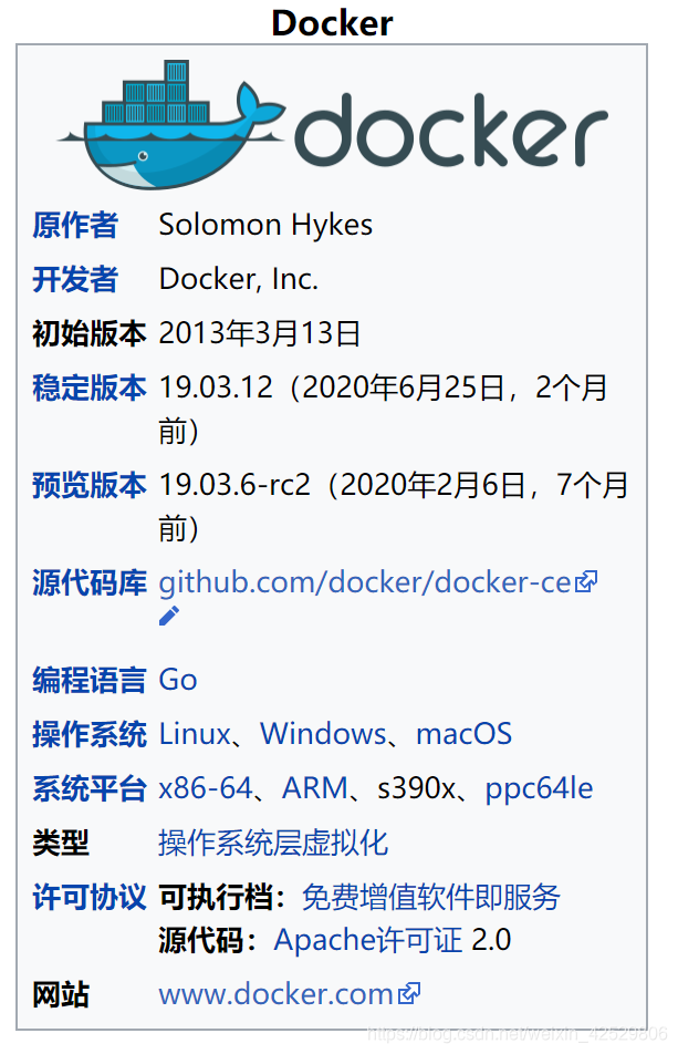 Docker 是一个开源的应用容器引擎,让开发者可以打包他们的应用以及依赖包到一个可移植的容器中,然后发布到任何流行的Linux机器上,也可以实现虚拟化,容器是完全使用沙箱机制,相互之间不会有任何接口
