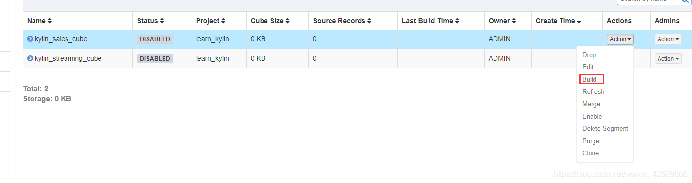 - http://ip:7070/kylin 用户名/密码 ADMIN/KYLIN