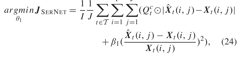 服务网络部分loss计算公式如下, Q t c Q_t^c Qtc是所有非零项的指示矩阵, β 1 \beta_1 β1是一种适当的正则化,可以平滑较大的预测差异。