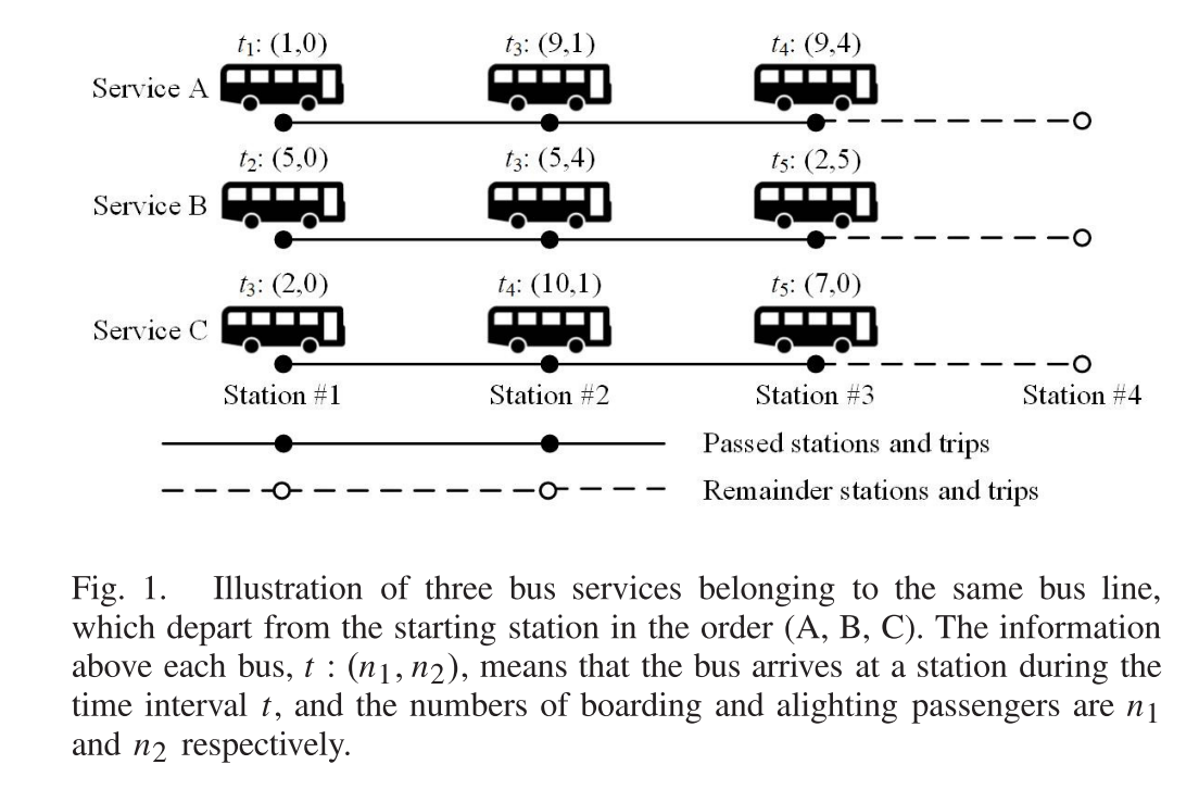 细粒公交服务级别的流量预测。也就是预测下一个短期间隔内通过每个车站的每个公交线路的每个服务的乘客总数。作者把研究目标从对站点级别对线路级别,提升到线路下不同公交服务(具体到线路上的哪一辆车)级别。